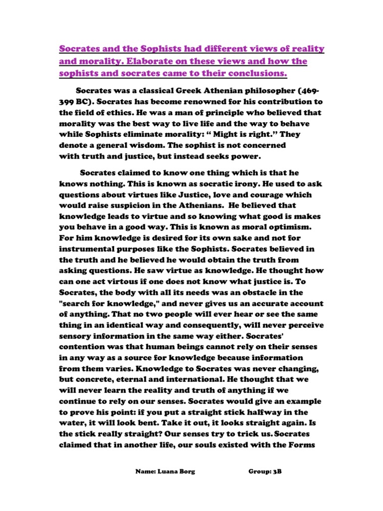 He is certainly seen as the most philosophers in Greek that has mostly trapped his life physically. Socrates portrays it as natural essays on the philosophy of socrates the philosophers to care much about the souls of other people while caring less about money. The sophists lived a fancy life because of the fee they collected.